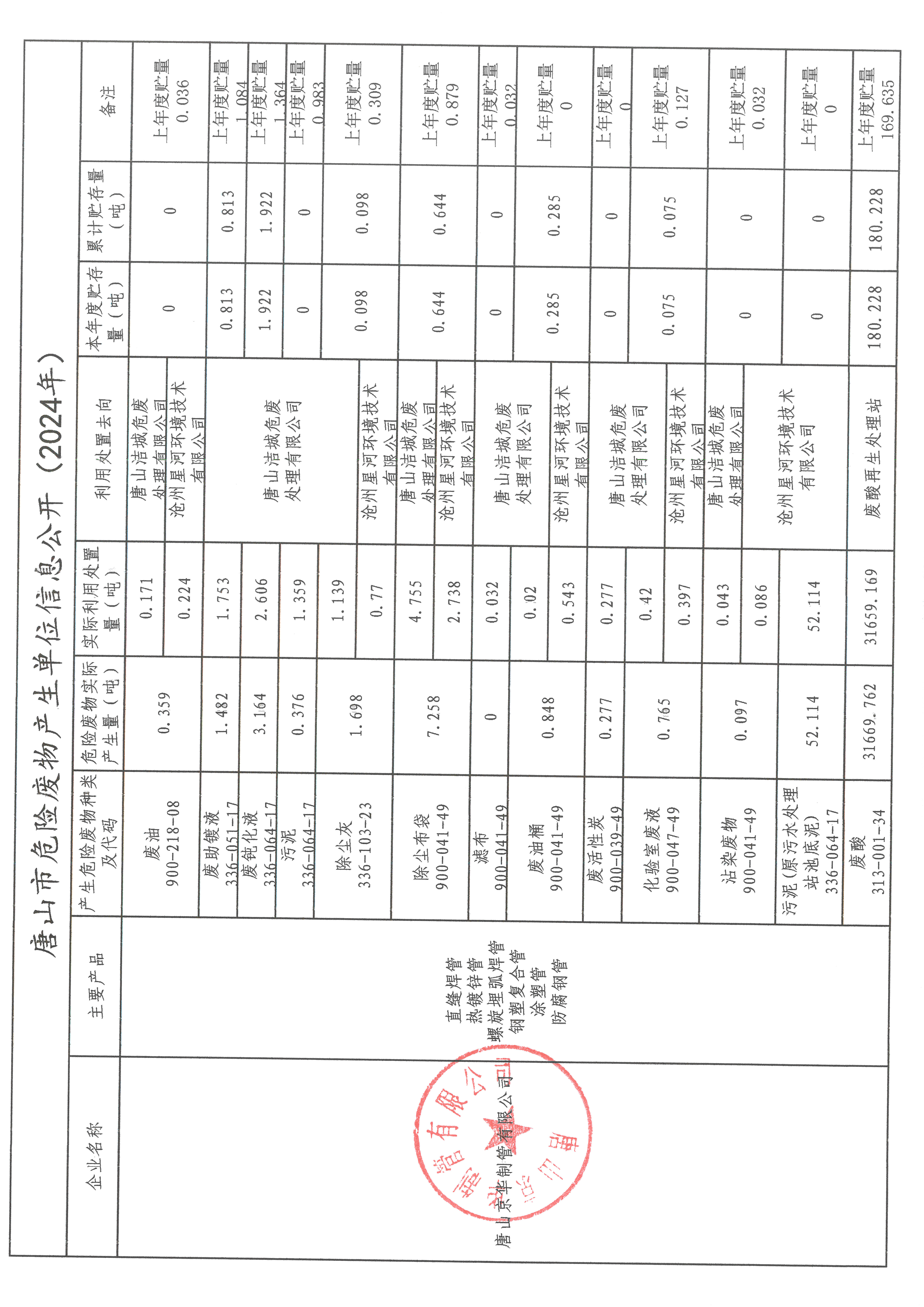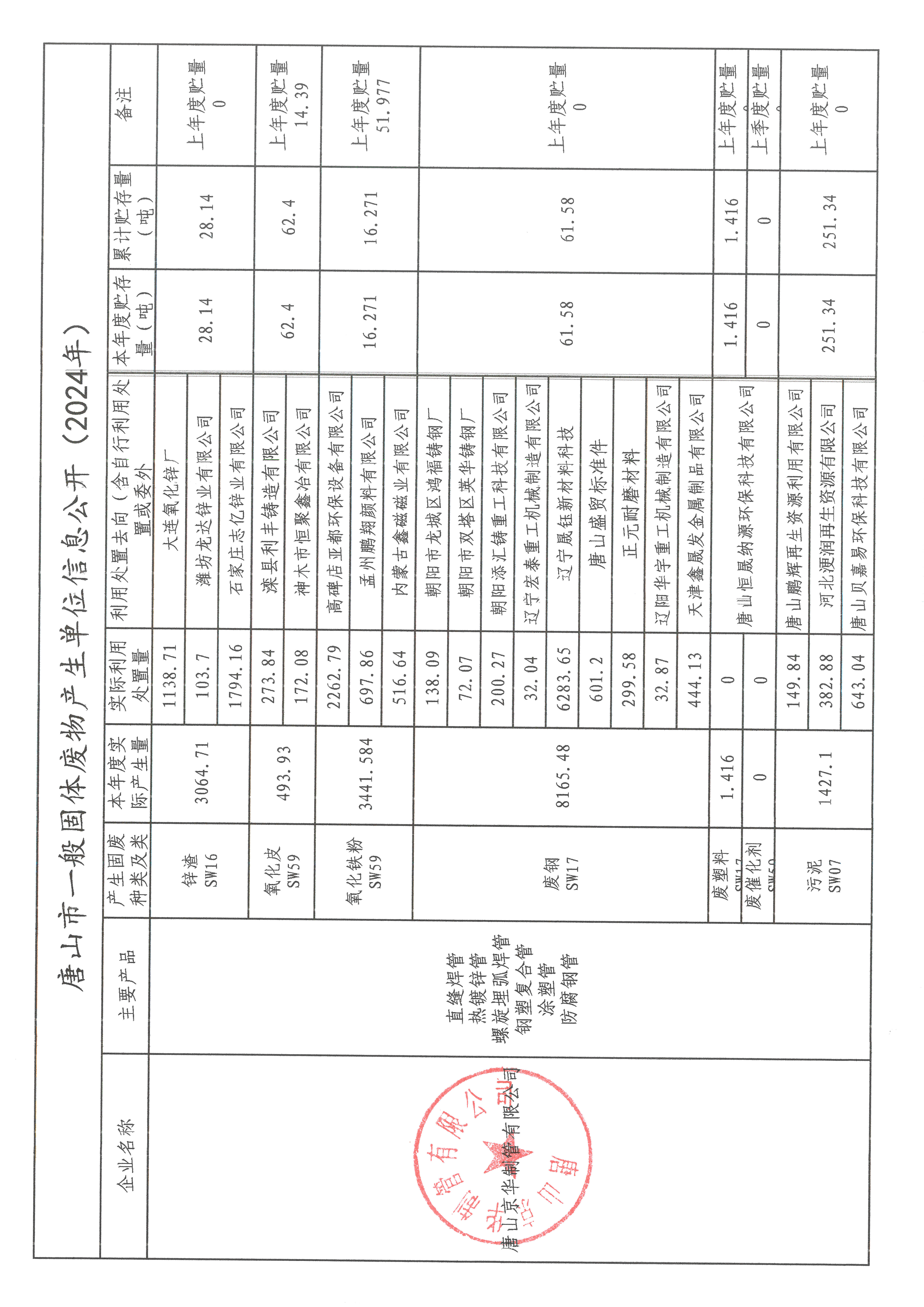 唐山京華制管有限公司2024年第四季度信息公開(kāi)